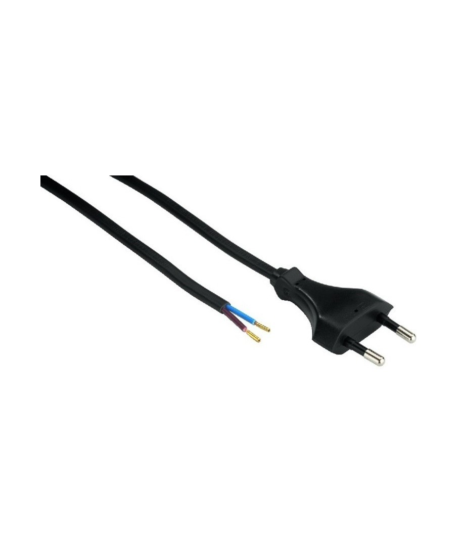 1,5 meter svart strømkabel med euro plugg og avisolerte ledninger.