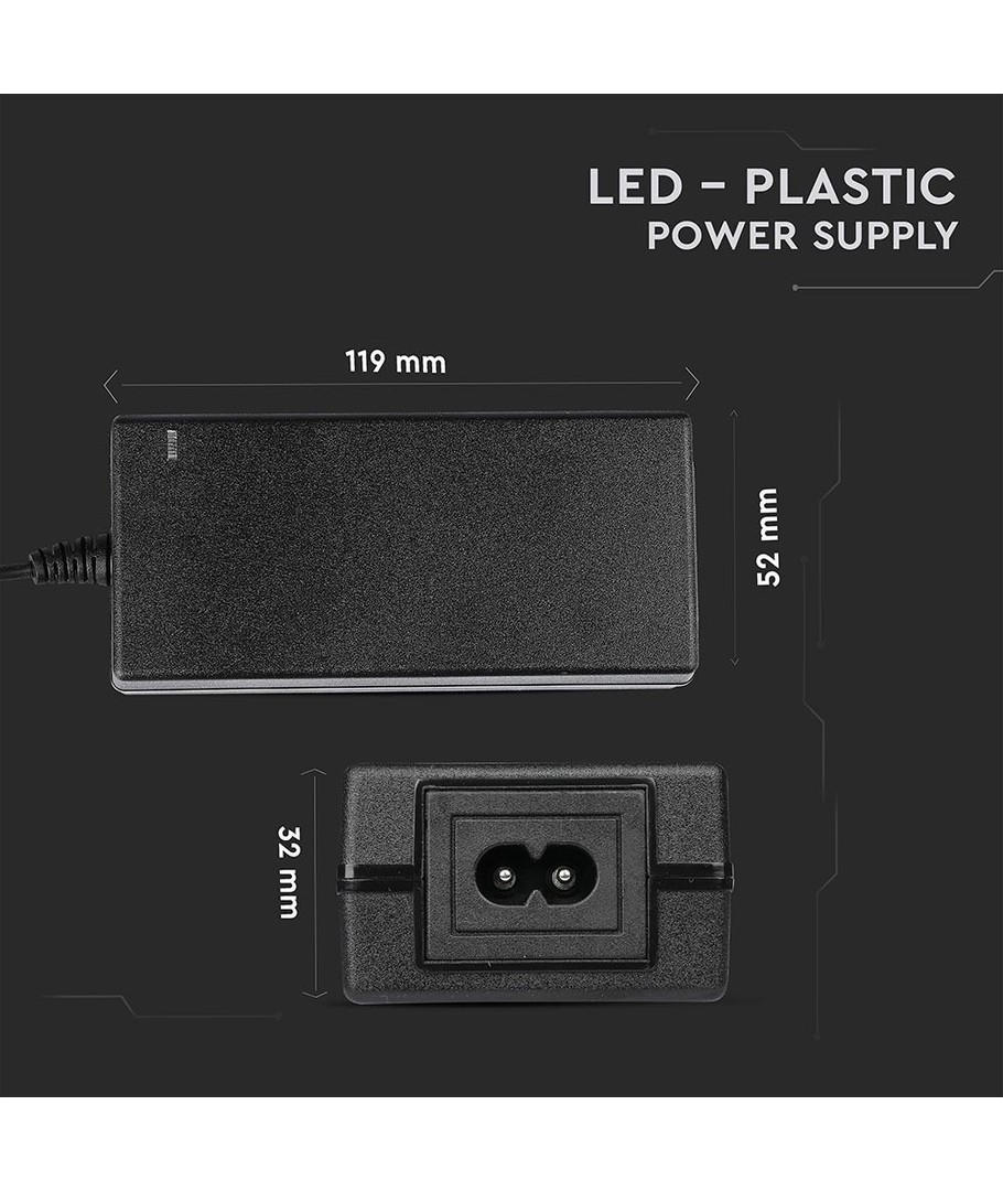Den kompakte designen på 120 x 33 x 55 mm gjør denne strømforsyningen lett å integrere i ulike installasjonsmiljøer, selv hvor plassen er begrenset. Med en IP44-klassifisering tåler denne strømforsyningen både fuktig luft og vannsprut, noe som gjør den godt egnet for bruk i våtrom.