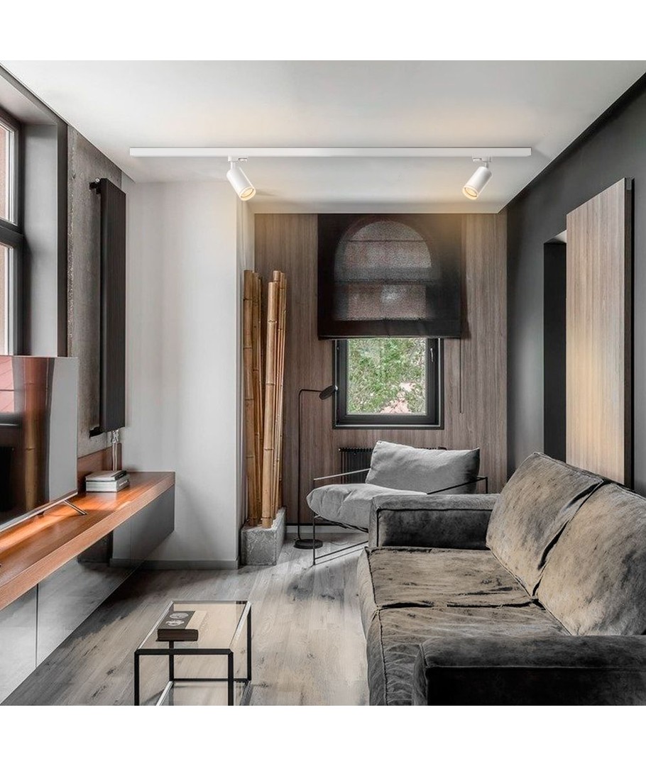 Med en kompakt størrelse kan denne skinnespoten diskret integreres i ethvert rom uten å ta opp mye plass. Den er laget for innendørs bruk og er perfekt for å lyse opp stue, kjøkken eller kontor.