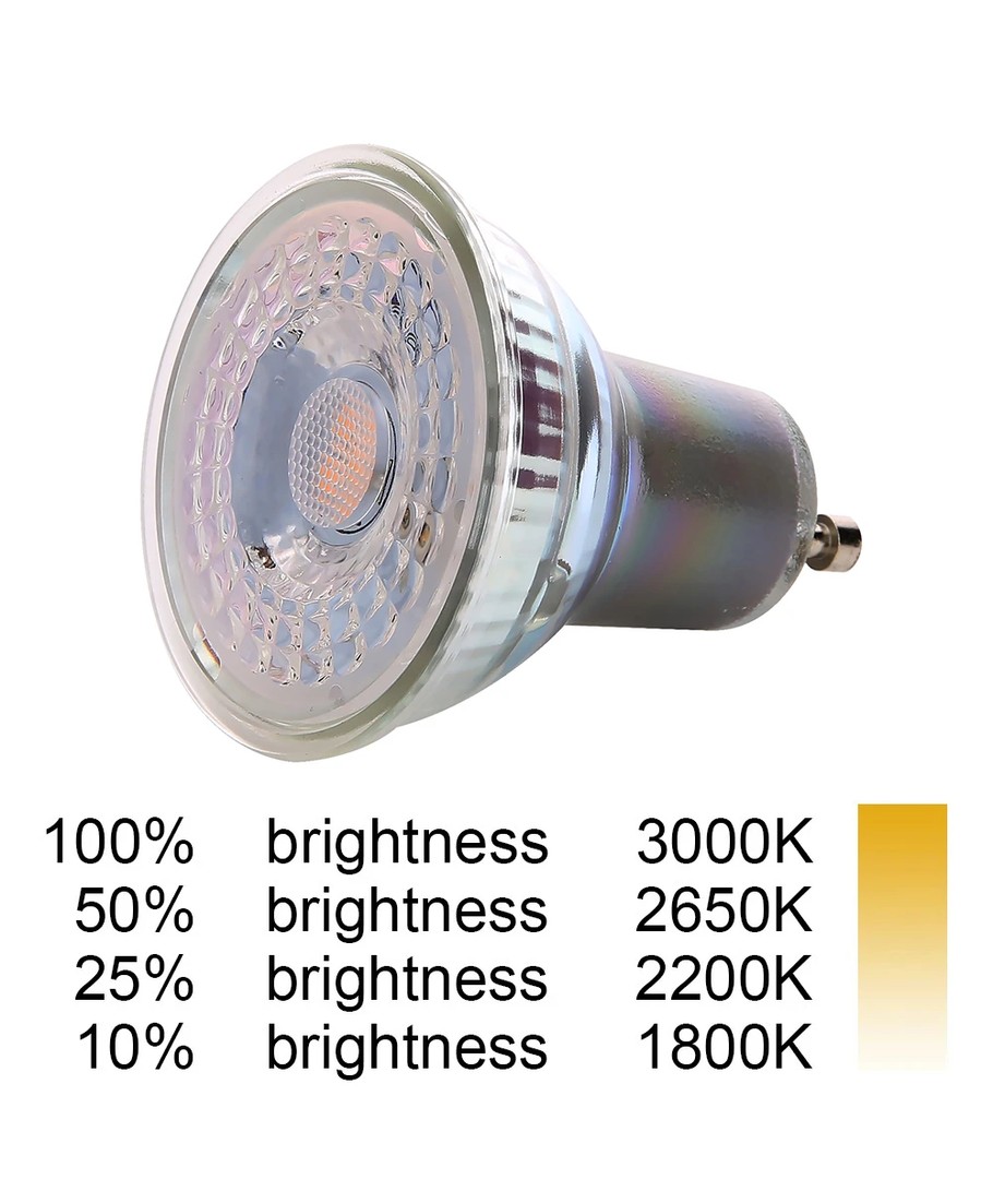 DimToWarm spot gjør lyset varmere fra 3000 kelvin til 1800 kelvin når lyskilden dempes.