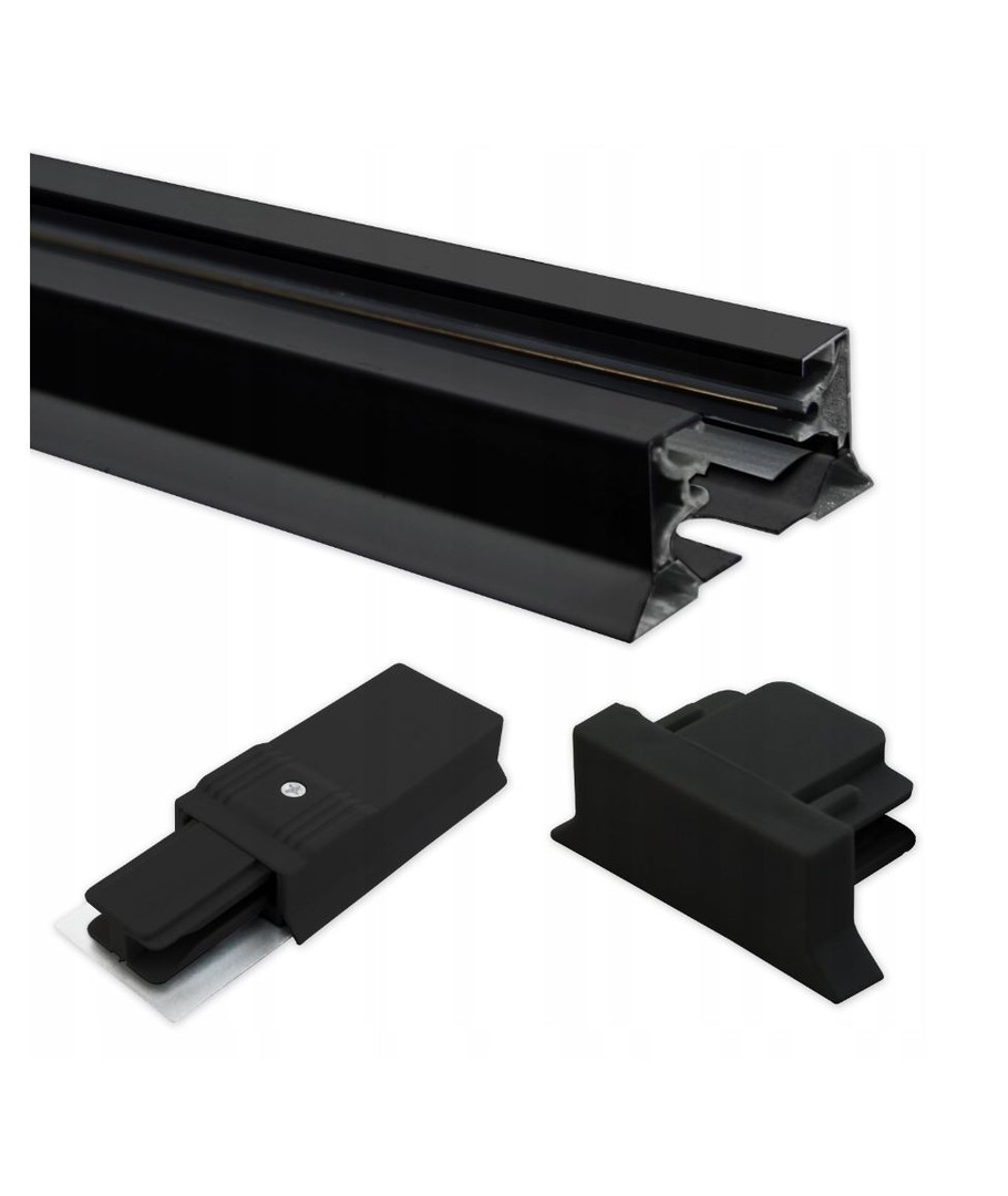 Sort, 1-faset, 1F2W, komplett med tilkobling og endestykke