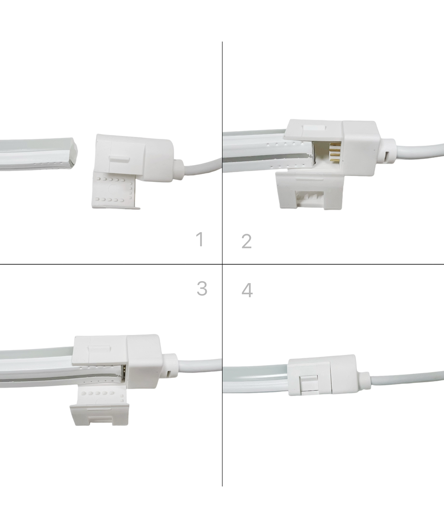 Samlingene ved stikk og endeplugg må tetnes med klar silikon for at oppnå IP67 innen produktet kan brukes.