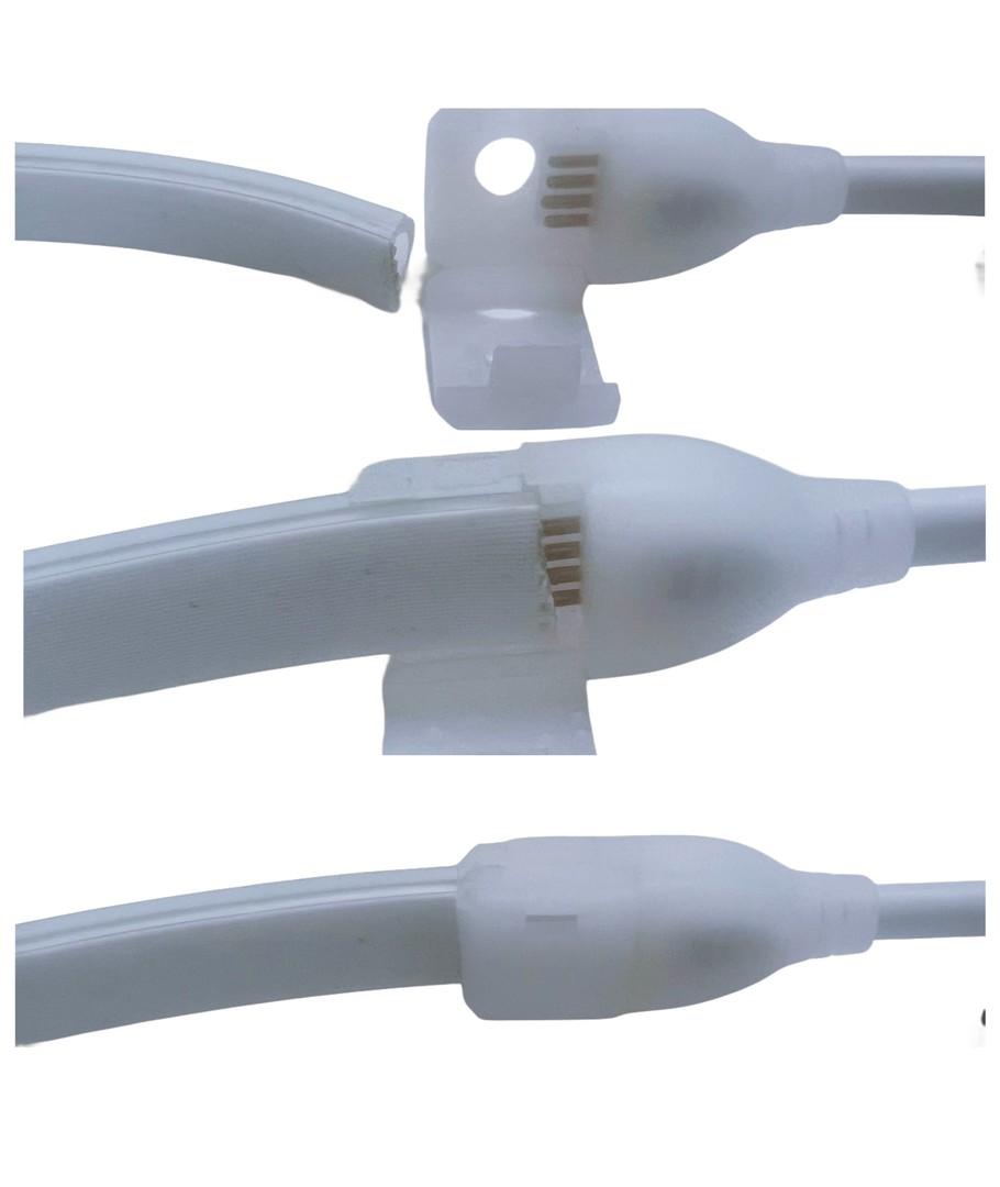Listen kan kuttes hver hele meter ved markeringene. Det er et stykke kan være laget av f.eks. 7 eller 8 meter, men ikke 7,5 meter. Skjøtene ved pluggen og endepluggen skal tettes med klar silikon for å oppnå IP67 før produktet tas i bruk.
