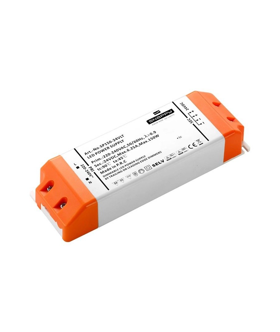 Dimmbar kvalitets LED driver fra Snappy på 1-150W som leverer en konstant spenning på 24V DC - Driveren er perfekt til dimming av 24V LED strips. Kan ikke anbefales til LED pærer.