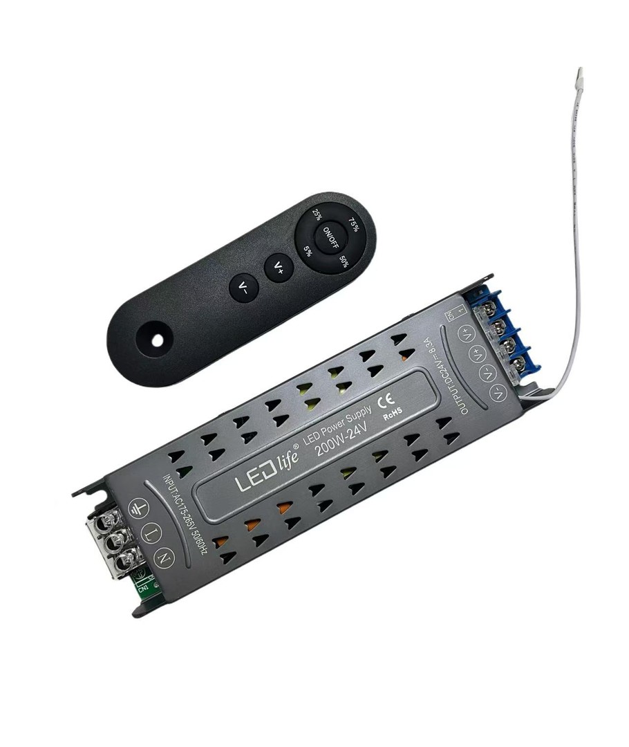 Dimbar 24V flimmerfri strømforsyning 200W.
