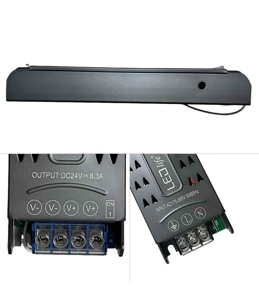 For å sikre problemfri installasjon, er strømforsyningen designet for å kobles til en 230V forsyning og gir en jevn 24V DC strøm ut. Dette gjør den perfekt for LED lys som trenger en konsistent strømkilde.