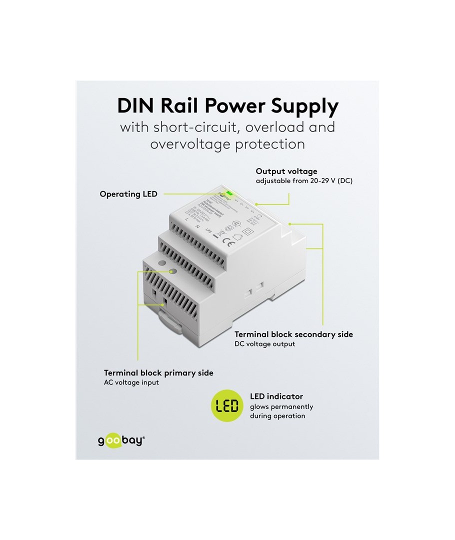 Perfekt for 24V LED pærer, spots, dørkameraer, automatisering mm.