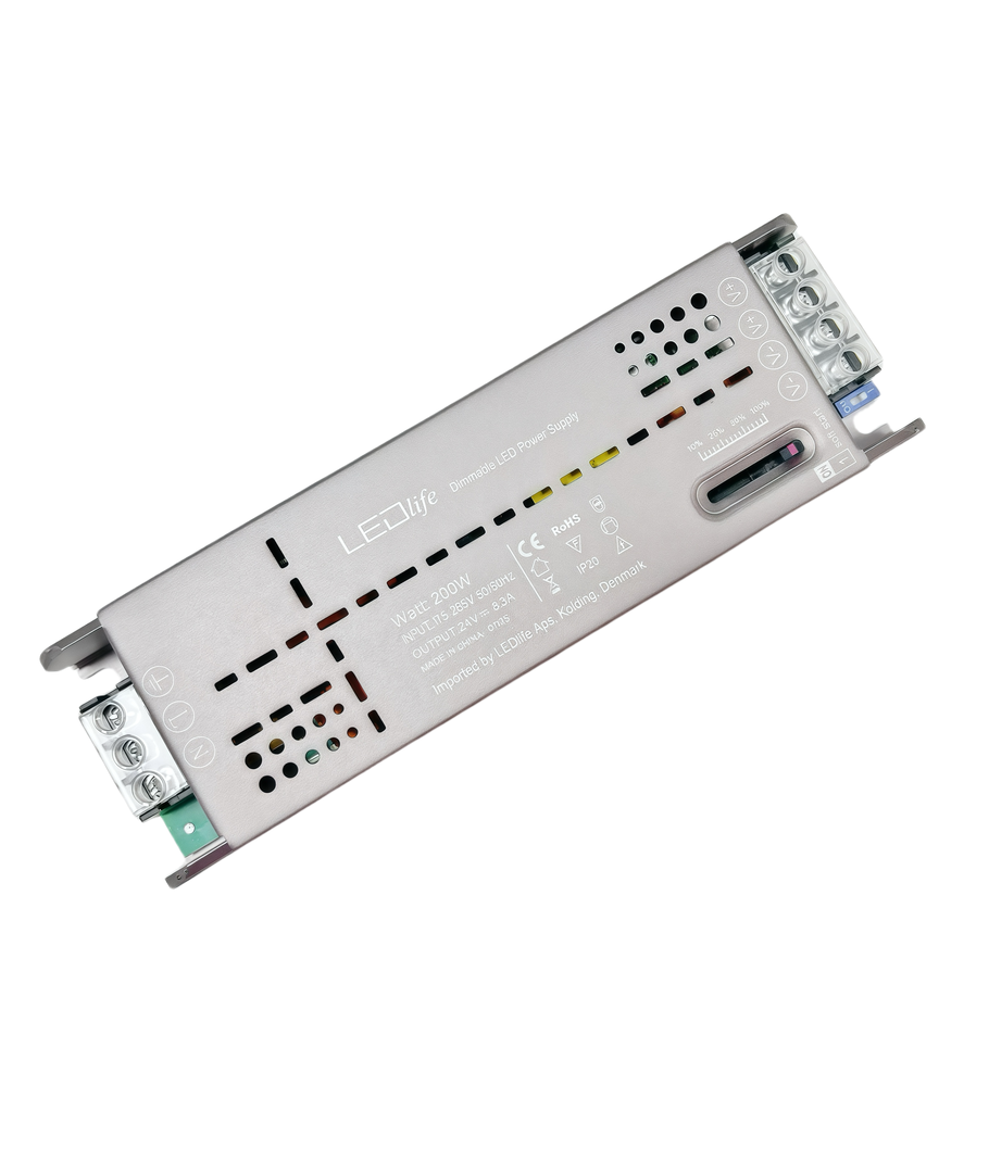 Opplev optimal ytelse med vår Slide dæmpbare strømforsyning, perfekt skreddersydd for moderne LED belysning. Denne kraftige enheten gir en stabil 24V DC utgang og har en total effekt på 200W.