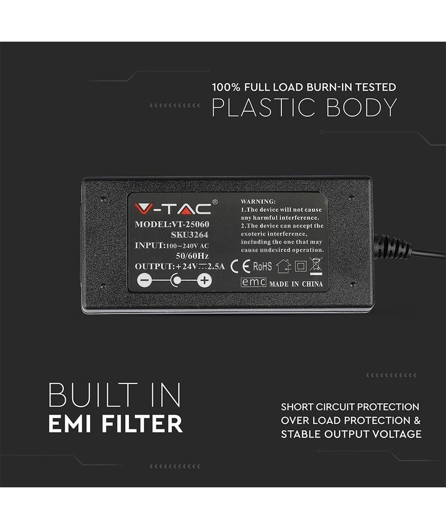24V / 2,5A strømforsyning.