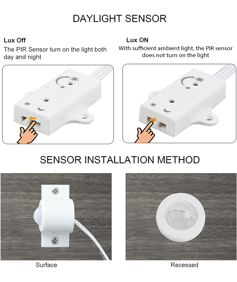Dagslyssensoren sørger for at belysningen din kun slås på når det er nødvendig. Den justerer automatisk lysstyrken basert på det naturlige lyset i rommet, noe som sparer energi og sikrer riktig lysnivå.