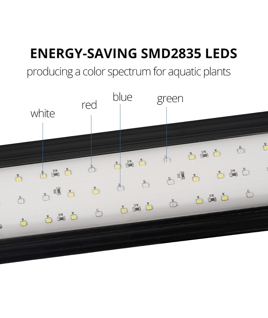 Dette LED-armaturet er ideelt for deg som ønsker å gi ditt akvarium det beste lyset. Designet for å passe akvarier med lengde fra 75 til 100 cm, gir dette armaturet et fantastisk lys med en effekt på 19W, noe som sikrer optimal belysning for både planter og fisk.