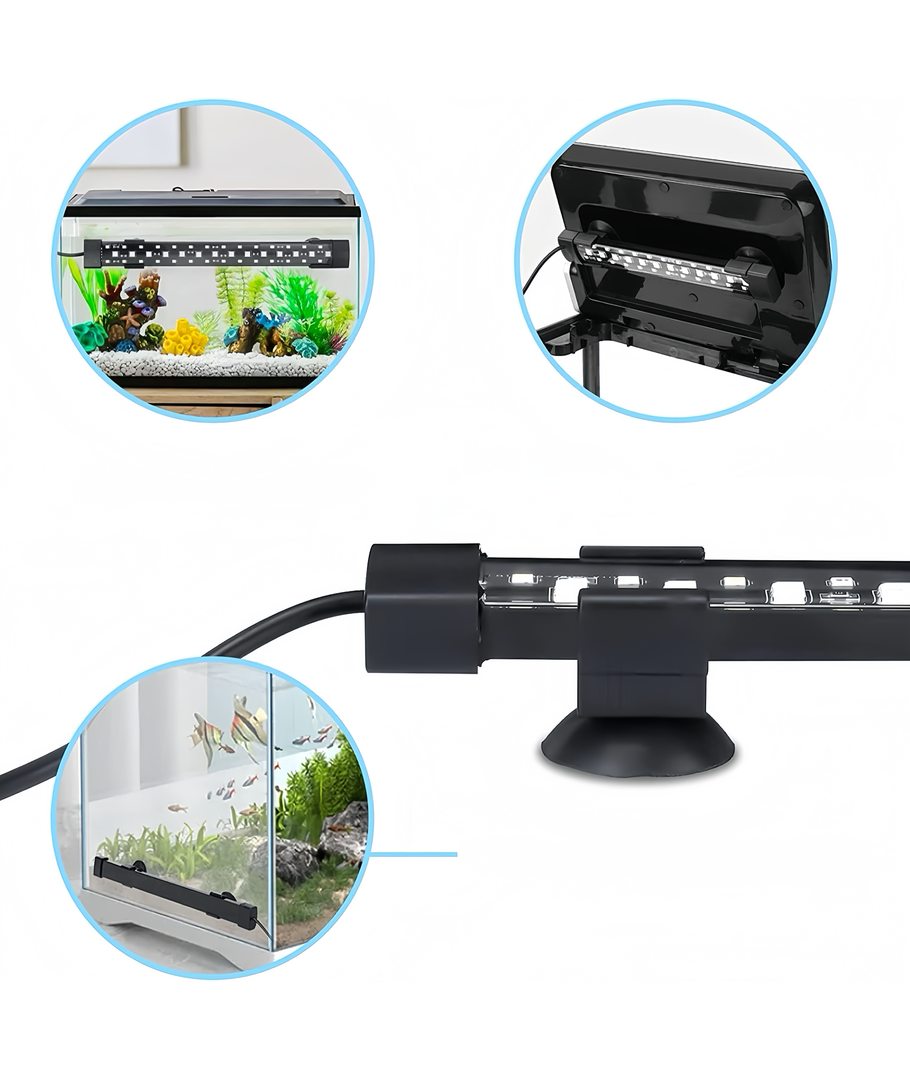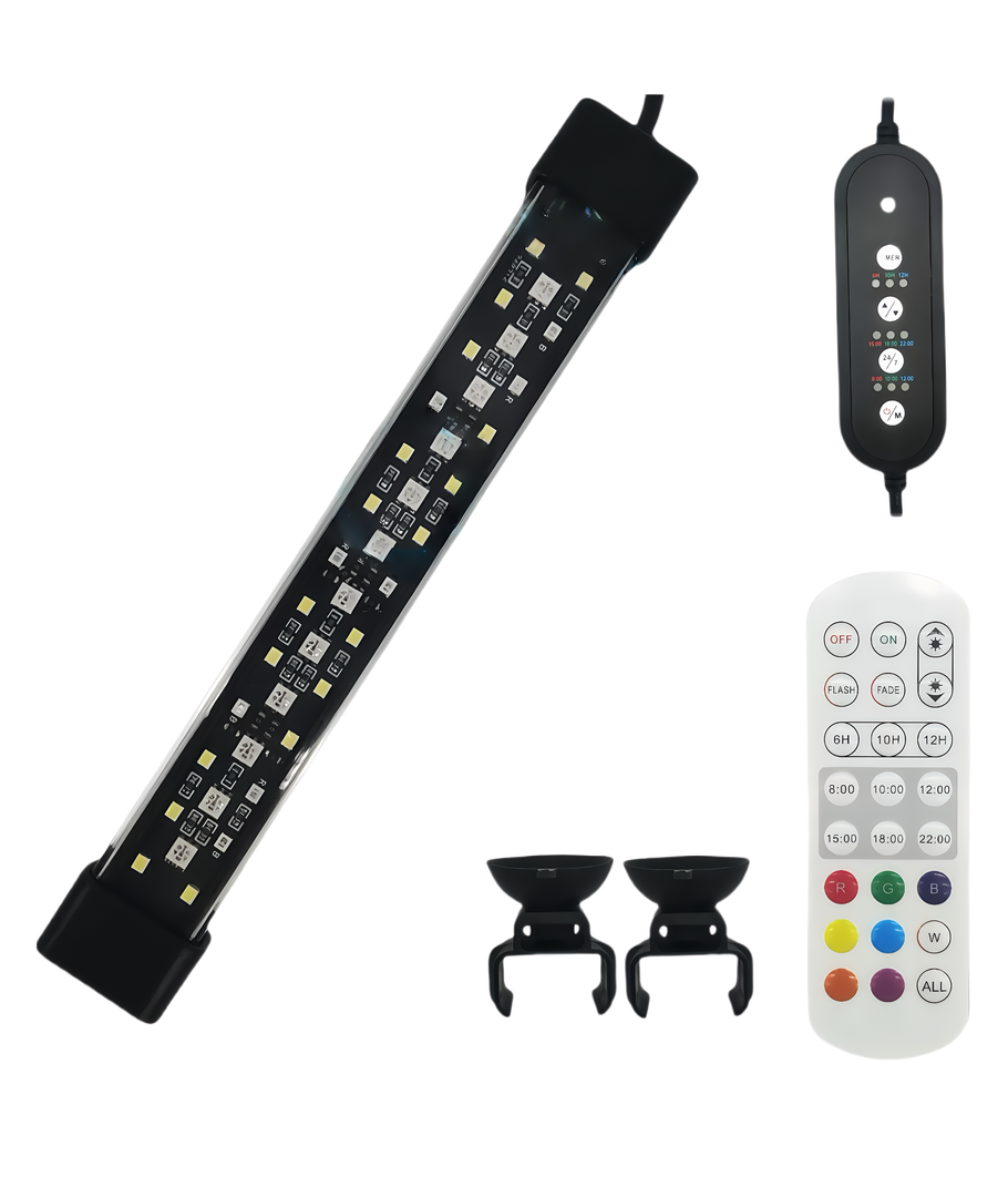 Forvandle akvariet ditt til en levende undervannsverden med vår 30 cm akvariearmatur. Denne avanserte belysningsløsningen kombinerer moderne teknologi med praktisk design for å tilby optimal belysning til ditt akvarium.
