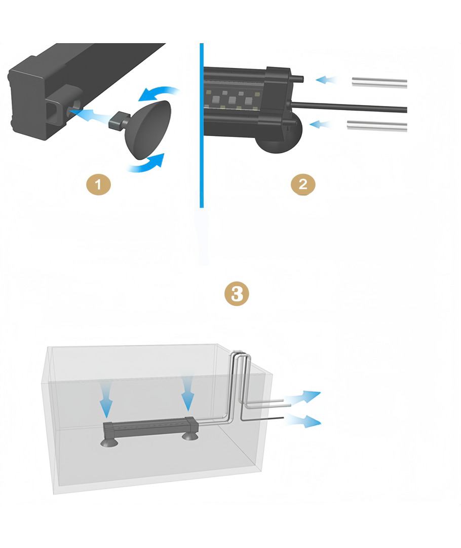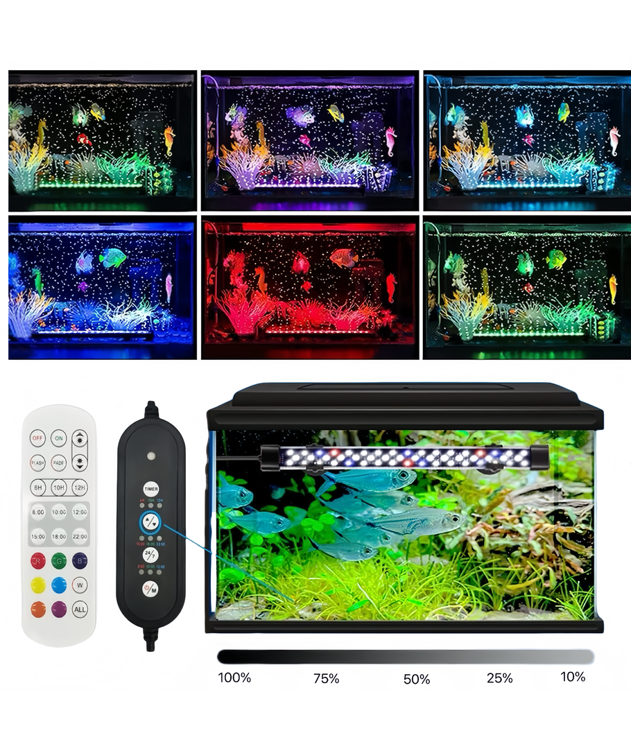 Armaturet kommer med en integrert lyskilde, noe som betyr at du ikke trenger å bekymre deg for hyppige bytter av pærer eller lysrør. Dette sikrer en varig og bekymringsfri belysningsløsning for å opprettholde det perfekte miljøet for ditt akvarium.