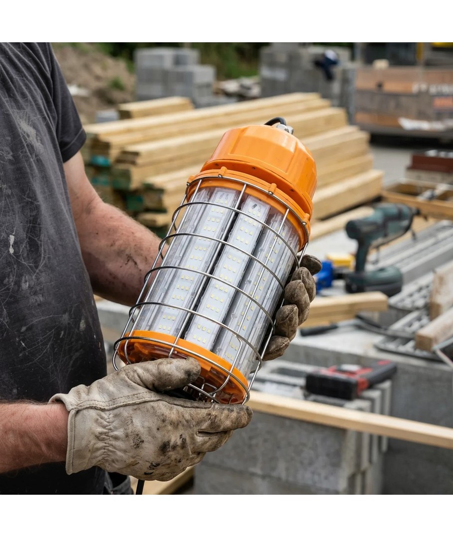 En sterk og praktisk arbeidslampe som gir pålitelig belysning til både byggeplass, verksted og renoveringsoppgaver.