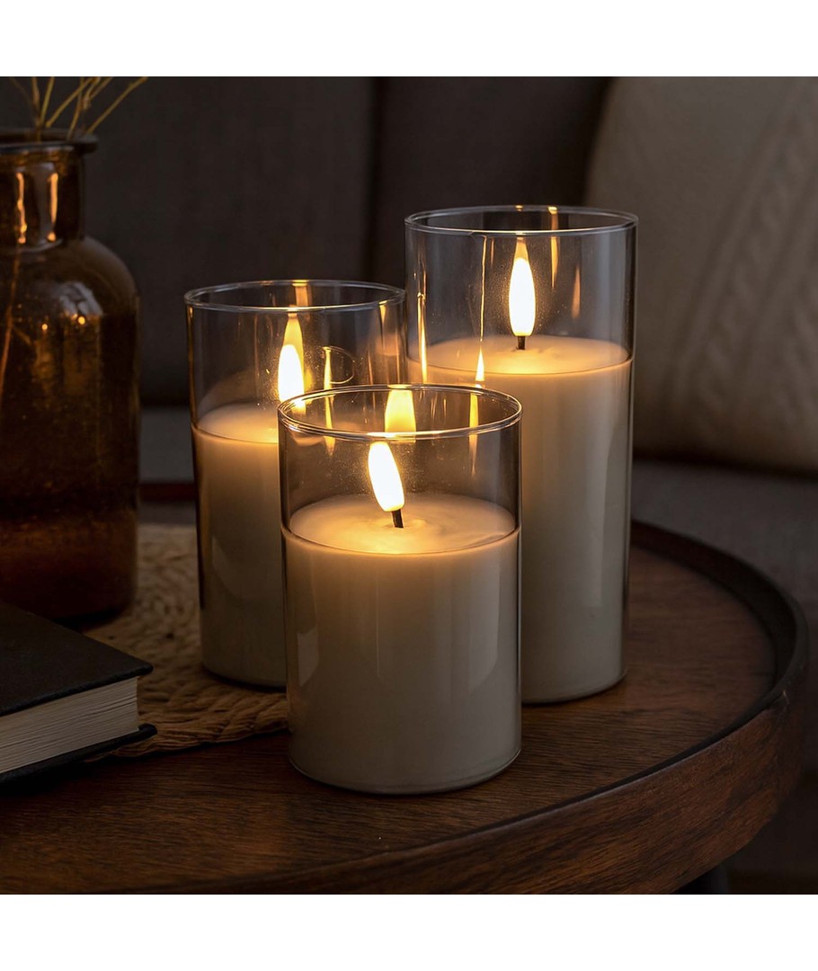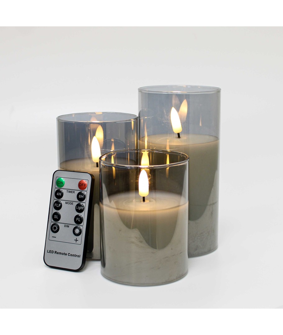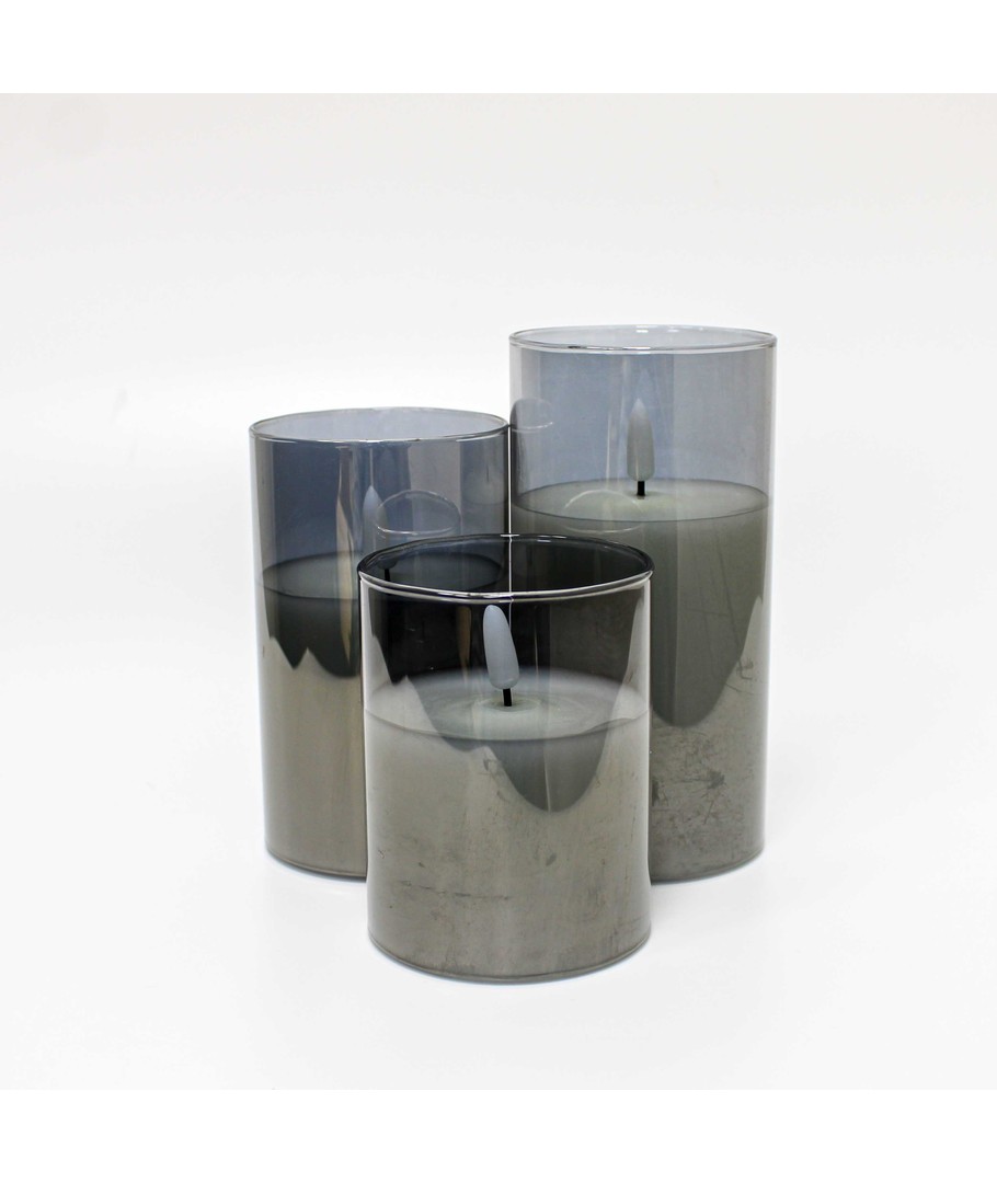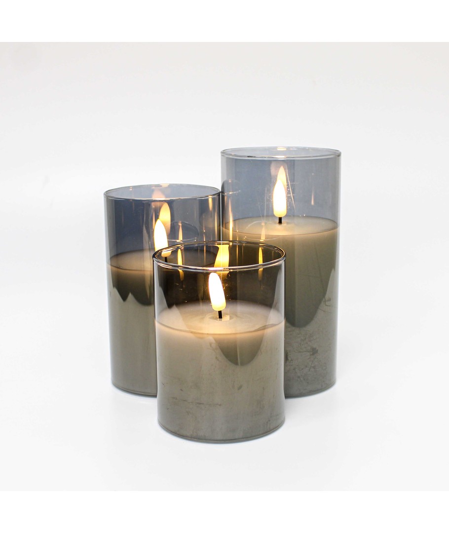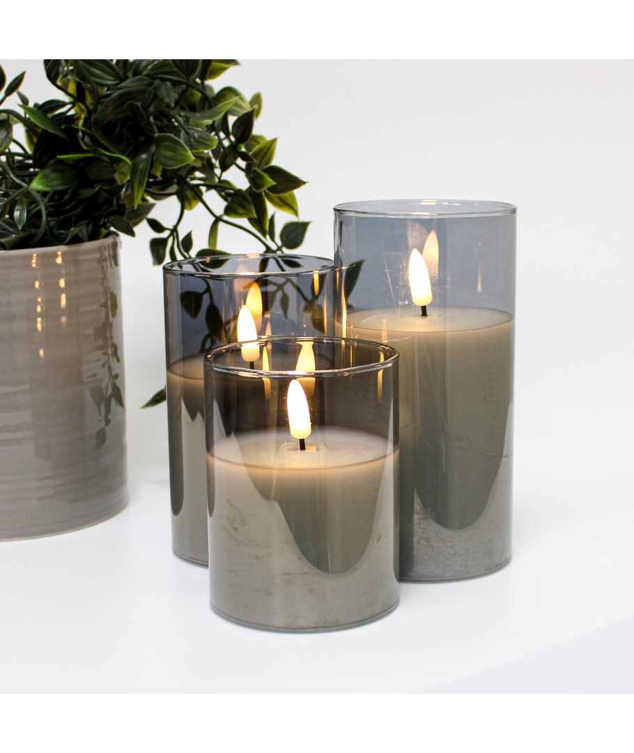 Opplev den betagende skjønnheten og stemningen fra levende lys uten risiko med vårt LED Blokklys sett i gråtonet glass. Dette elegante settet inneholder tre lys i forskjellige høyder med en realistisk flammeeffekt, som skaper en varm og innbydende atmosfære.