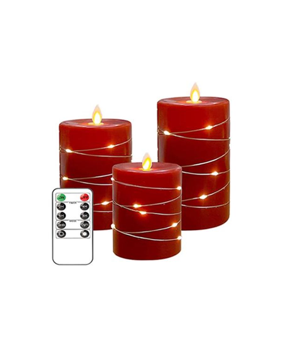 Ø7,5cm, fjernkontroll, ekte voks, bordeauxrød
