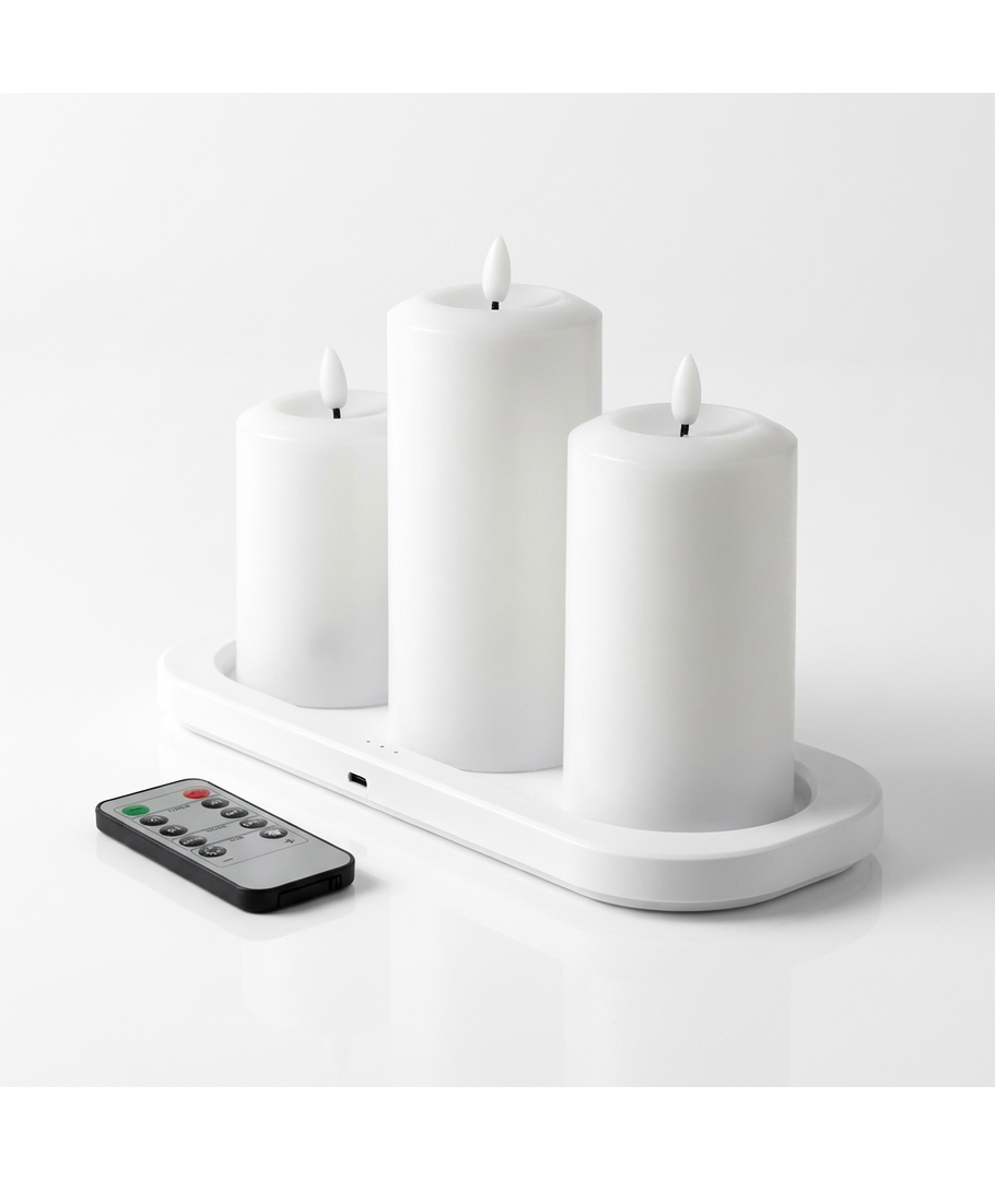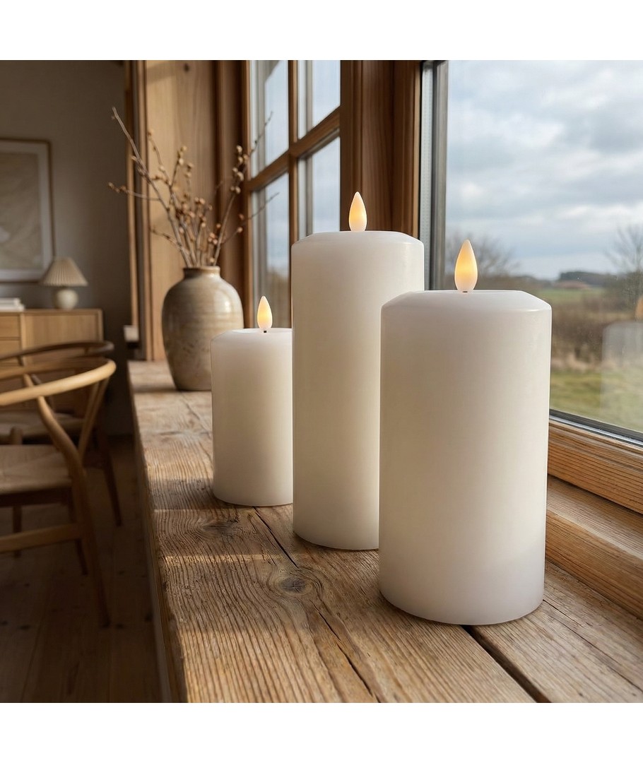 Opplev den hyggelige atmosfæren fra levende lys uten risiko for åpen ild med vår 3-pakning hvite LED-stearinlys med flammeeffekt. Disse elegante blokklysene passer perfekt i din innredning og tilbyr en avslappende belysning i ethvert rom.