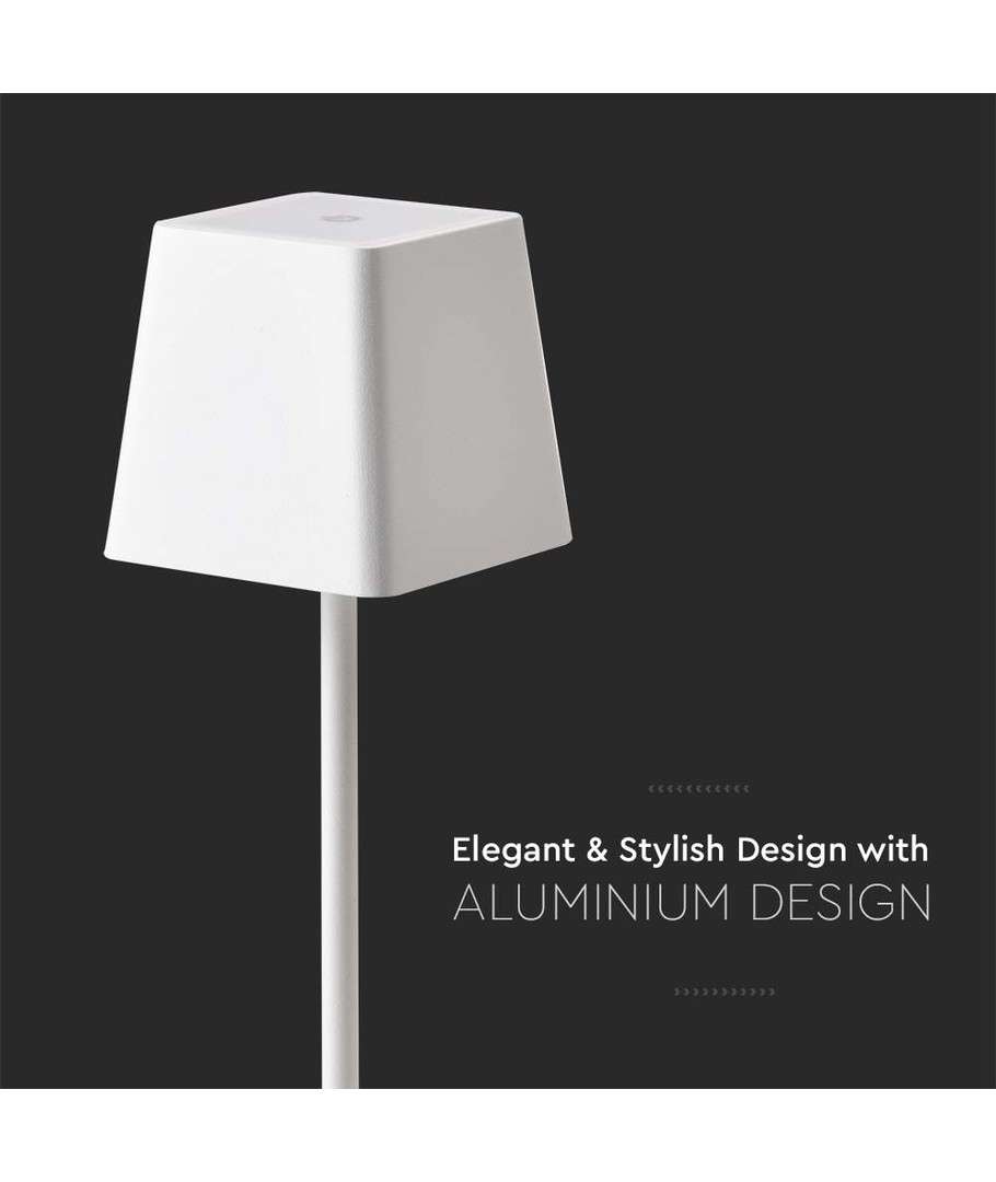 Skap en koselig og funksjonell atmosfære både innendørs og utendørs med vår oppladbare LED bordlampe. Denne elegante lampen i hvit har en moderne design som passer i ethvert miljø, enten det er på stuen, terrassen eller i hagen.