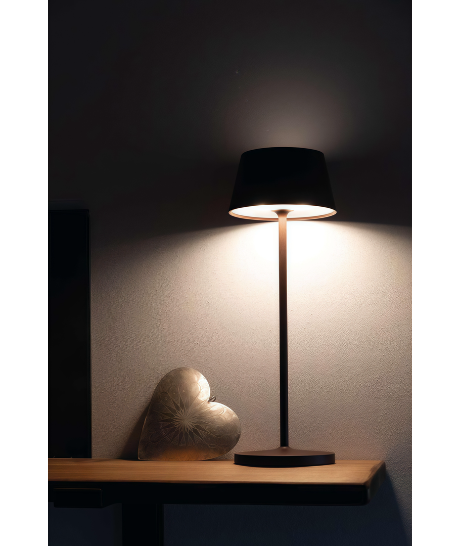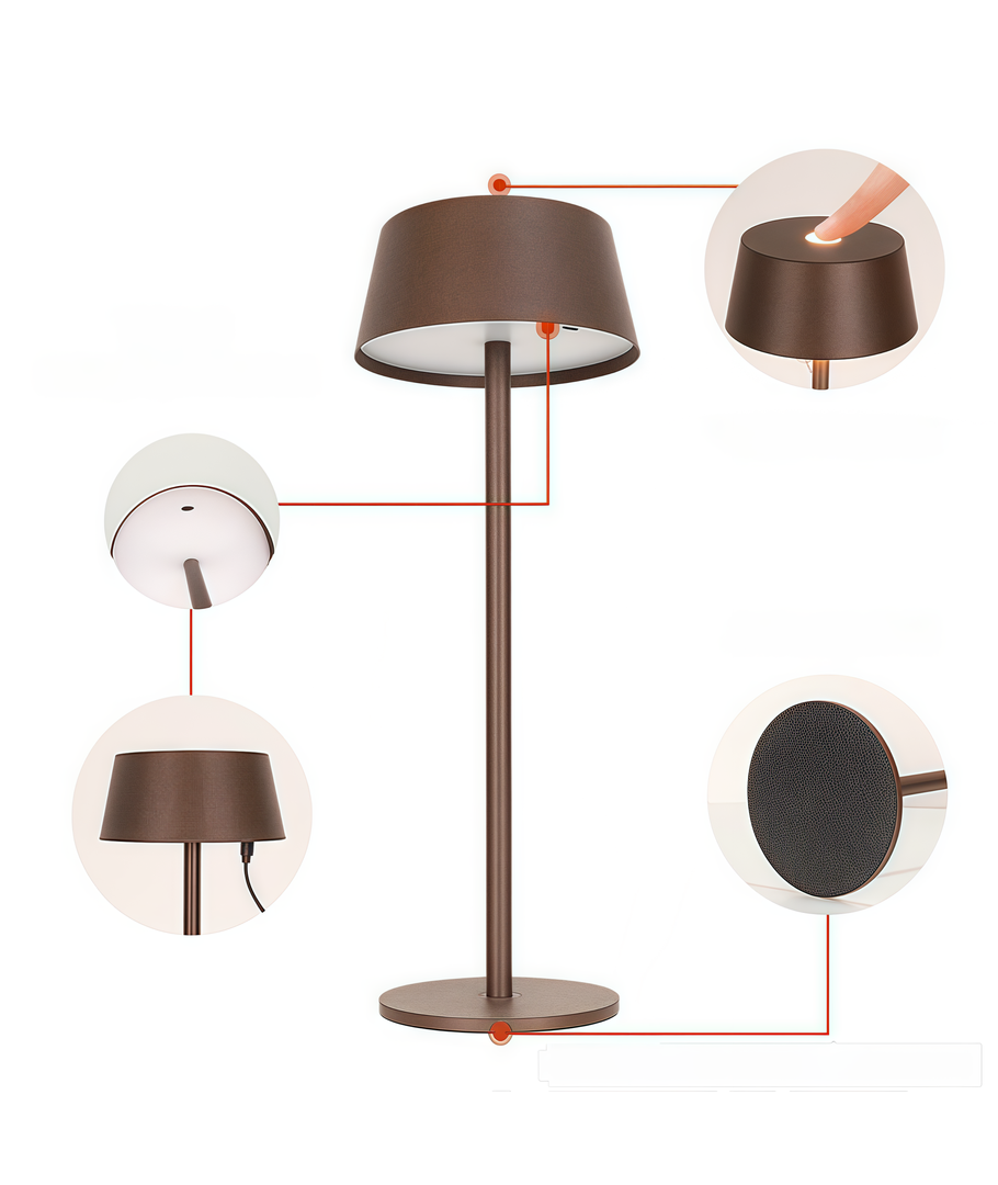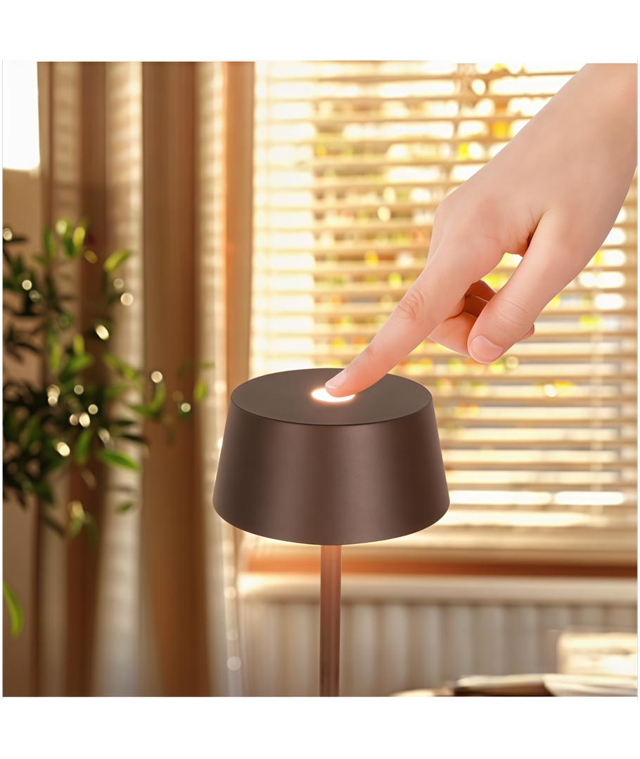 Denne oppladbare LED bordlampen gir deg muligheten til å skape en varm og avslappende atmosfære i både innendørs og utendørs miljøer. Med sin elegante brune farge passer den perfekt til ethvert interiør.