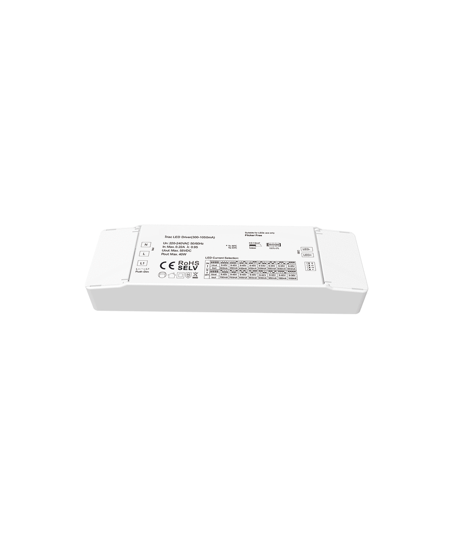 Triac faseavsnittdimmer, 700mA-1050mA, 9-42V, flicker free