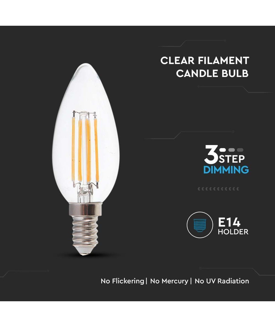 Velg V-Tac 4W LED stearinlys pære for å oppnå både praktisk og estetisk belysning, og nyt en energieffektiv lyskilde med lang levetid og høy kvalitet.