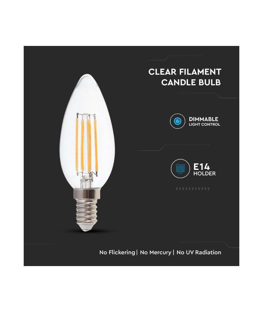 Forvandle hjemmet ditt med V-Tac 4W LED stearinlys pære, en liten investering for en betydelig forbedring i både miljøvennlighet og hjemmekomfort.