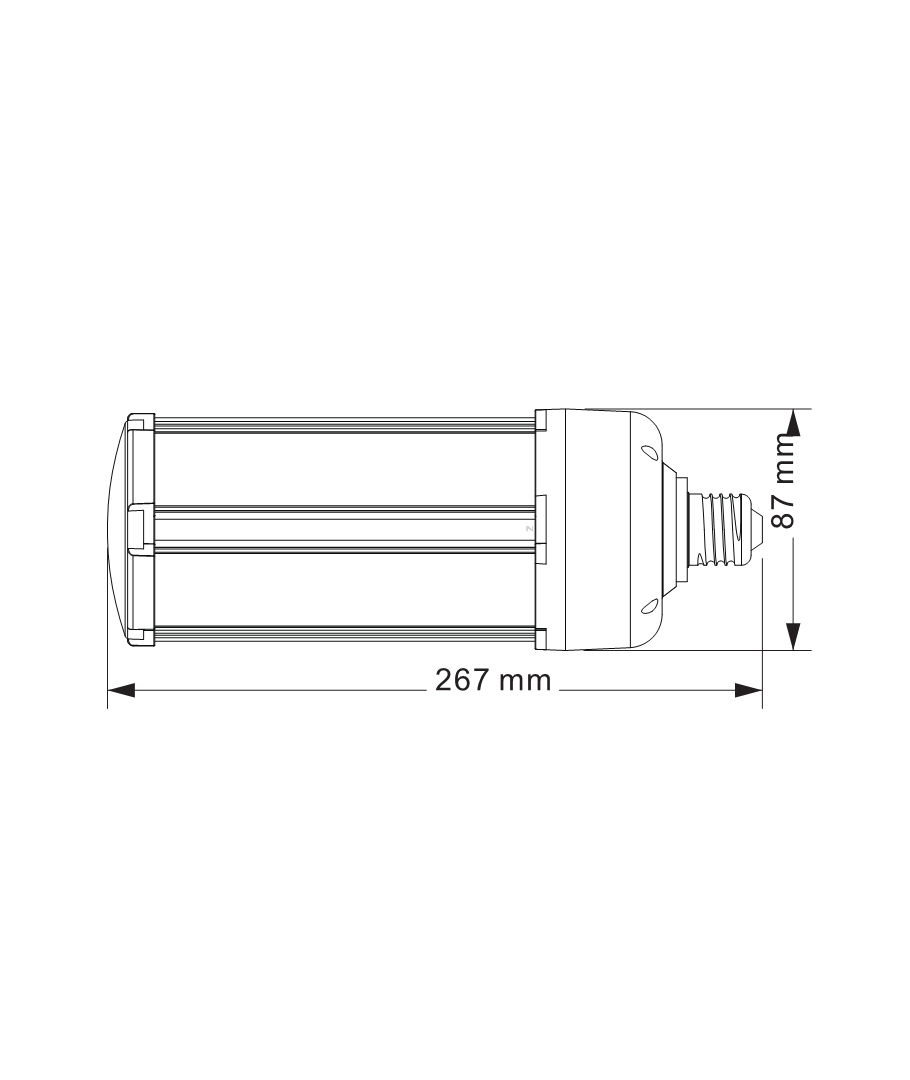 Med dimensjoner på 267 x Ø87 mm, er pæren designet for å passe perfekt i et bredt spekter av lamper og lysarmaturer, uten å gå på kompromiss med lysytelsen.