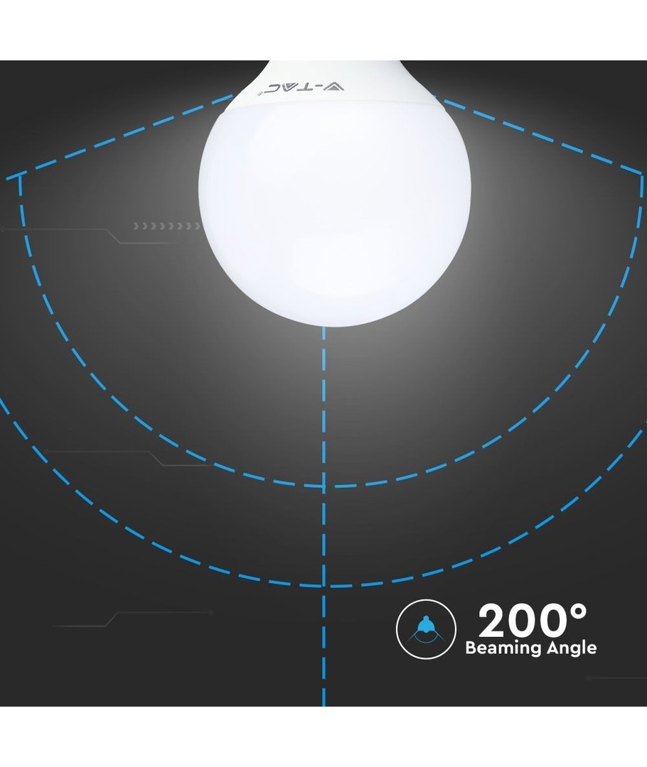 Denne globepæren krever tilkobling til en 230V forsyning og gir en bemerkelsesverdig lysstyrke på 810 lumen. Den har en høy lysspredning på 200 grader, som sikrer en jevn og bred fordeling av lyset, perfekt for både store og små rom.