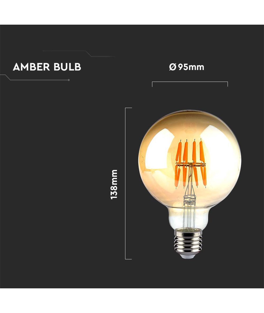 Opplev en koselig og stemningsfull belysning med V-Tac G95 8W LED globepære, som kombinerer retro-design med moderne teknologi.