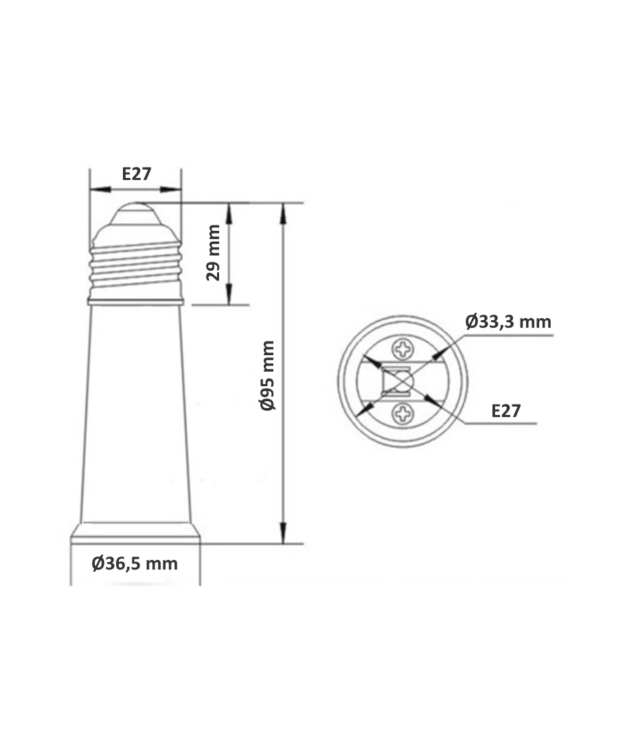 Forleng sokkelen i lampen din med 9,5 cm. Brukes oftest i for eksempel bordlamper der man ønsker pæren hevet lenger opp i lampen.