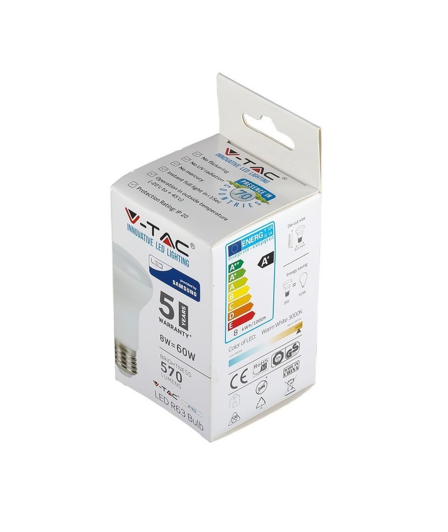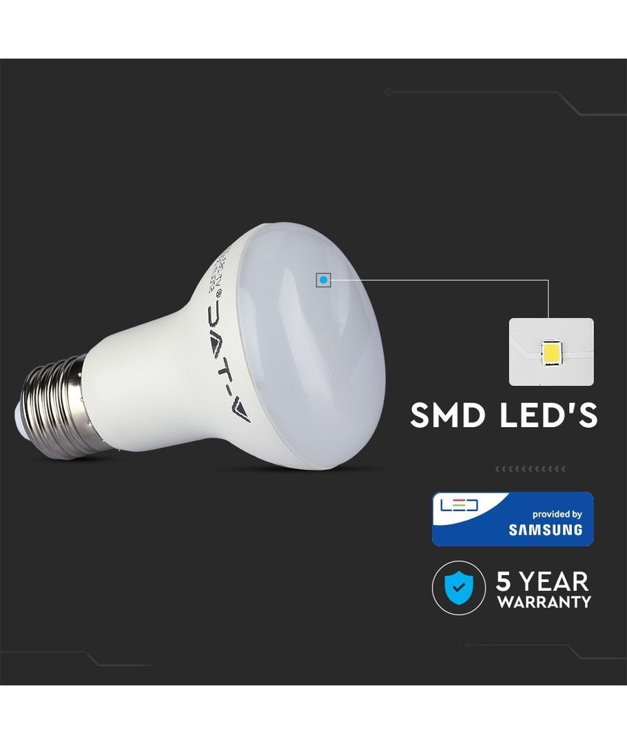 Denne LED-spotpæren er utstyrt med en Samsung LED-chip og kommer med en 5 års produsentgaranti. Ved å bruke komponenter av høy kvalitet, inkludert en pålitelig driver og effektiv kjøling, sikres en lang og sikker drift med minimal reduksjon i lysstyrke over tid.