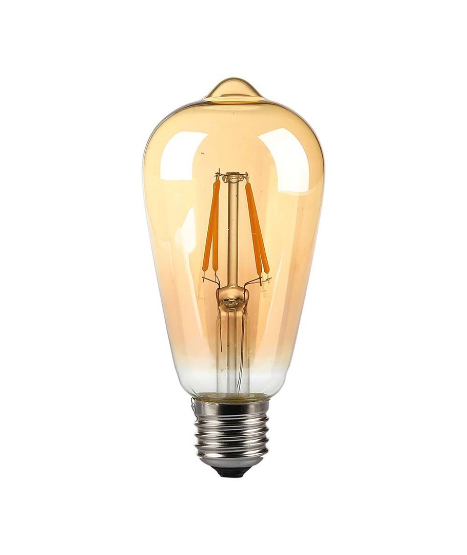 Den 8W E27 LED pære - ST64 med kulltråd og ravfarget glass gir et ekstra varmt og stemningsfullt lys, perfekt for enhver atmosfære.