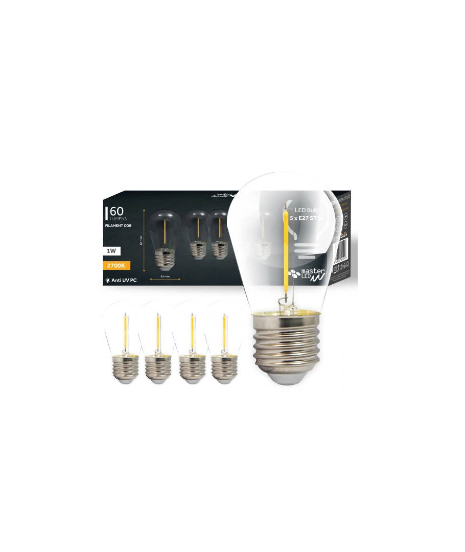 Oppdater belysningen i hjemmet ditt med disse innovative 1W LED pærene i ST14-format, utformet med moderne COB filament-teknologi. Disse pærene kommer i en praktisk pakke med 5 stykker, noe som gjør det enkelt å bytte ut flere lyskilder samtidig for et enhetlig og stilrent utseende.