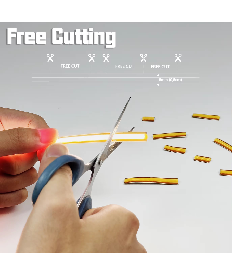 Transformér dine rom med vår 5m FreeCut COB Varm hvit LED-stripe, designet for å gi perfekt belysning i enhver setting. Med en effekt på 10W per meter er denne LED-stripen kraftig og effektiv.