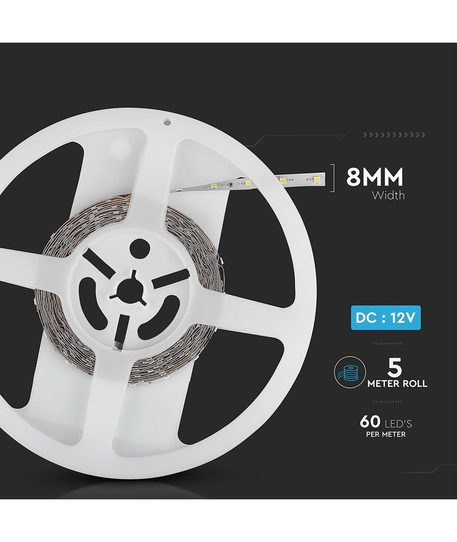 Oppdag vår 5m 4,2W/m LED-strip som er designet for effektiv belysning og estetisk appell. Med 60 LED per meter får du en briljant belysningsløsning som er både allsidig og brukervennlig.