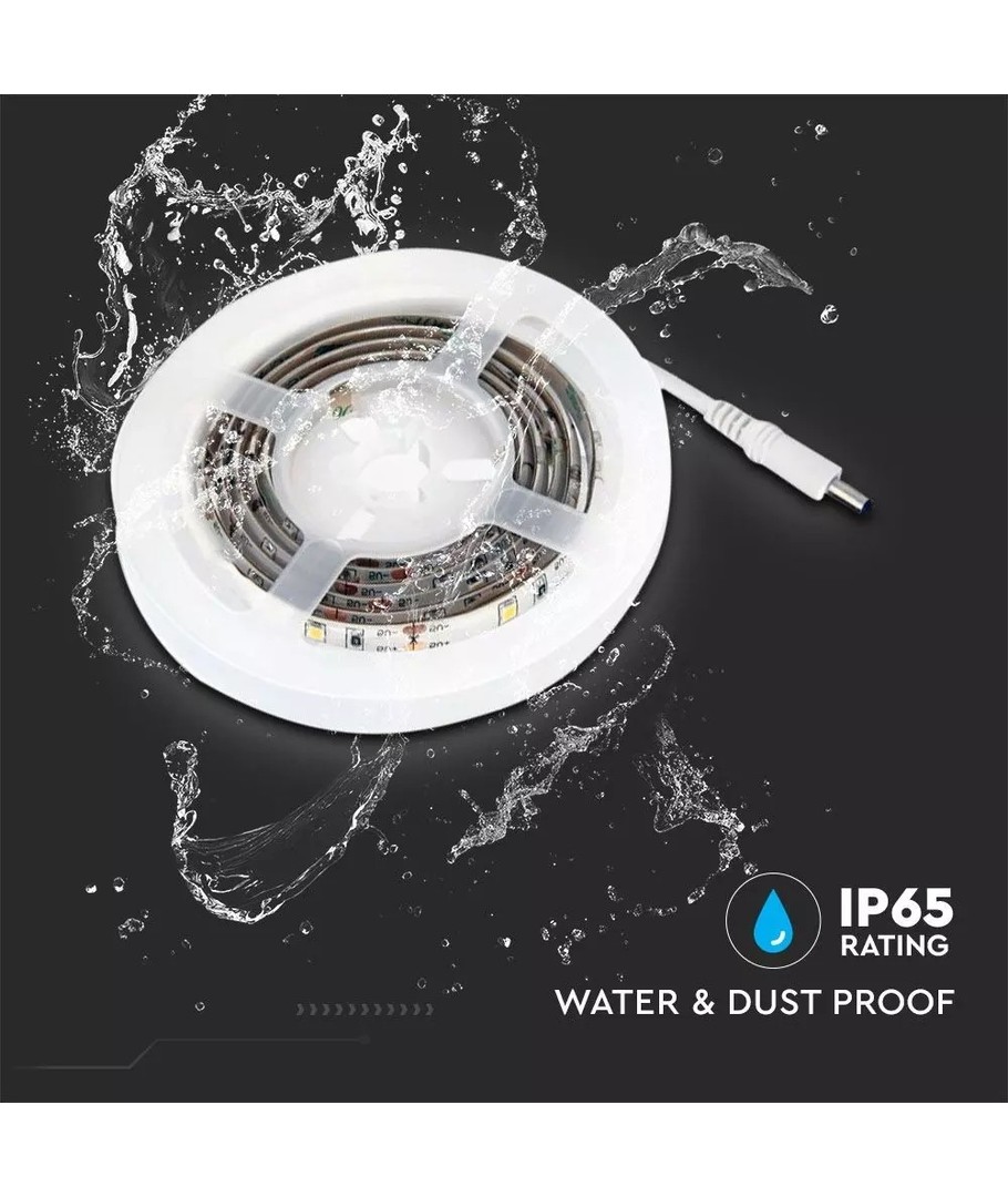 1 meter LED stripe fra V-Tac på batteri, med innebygget PIR sensor.