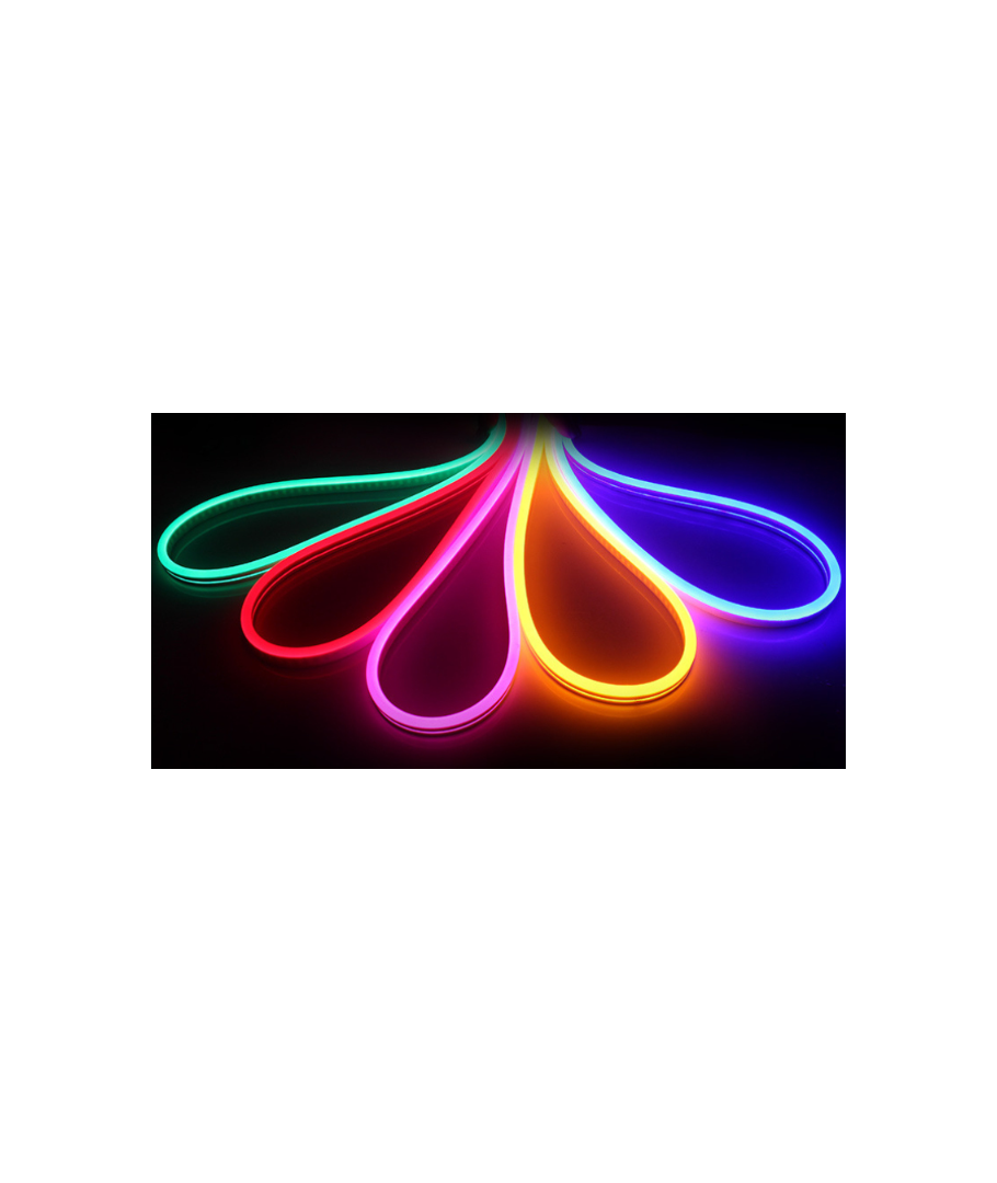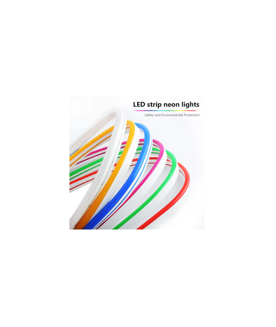Denne Neon Flex LED-stripen kombinerer stil og funksjonalitet for å skape en levende og dynamisk belysning. Med en lysstyrke på 355 lumen per meter og høy lysspredning på 100 grader, gir denne LED-stripen en jevn og imponerende lysfordeling.