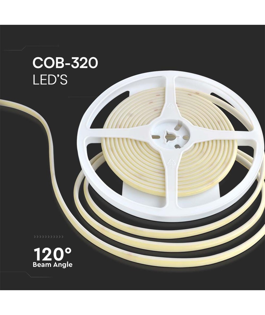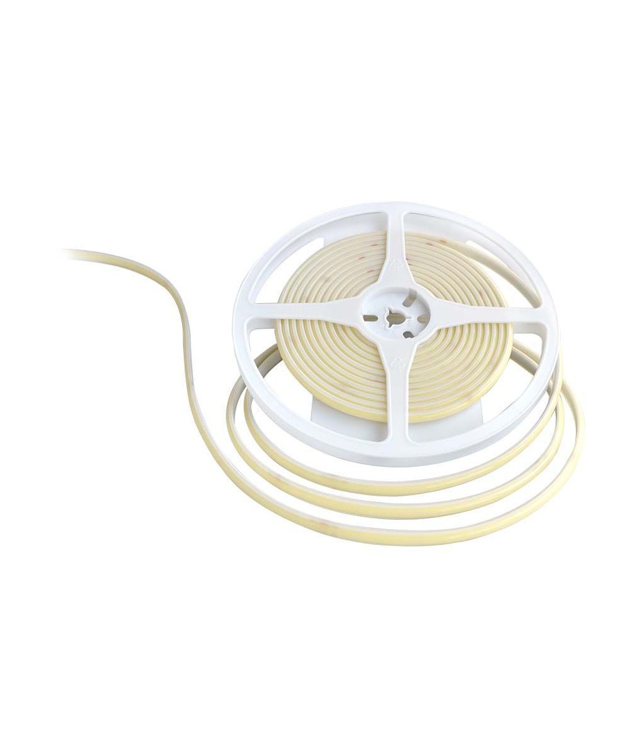 Oppdag en lysstripe med 10W/meter som kombinerer energieffektivitet og lysstyrke. Denne COB-LED stripen gir deg 840 lumen per meter og tilbyr en jevn lysspredning på 120 grader for en optimal belysning i alle rom.