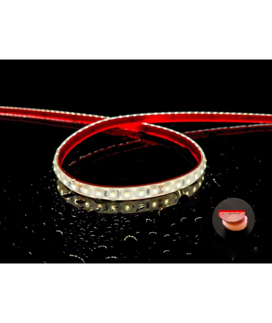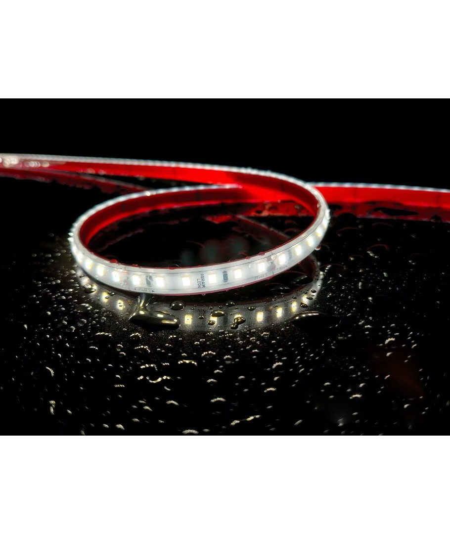 Enkeltfarget hvit Osram LED-stripe IP68 med 120 LED'er per meter.