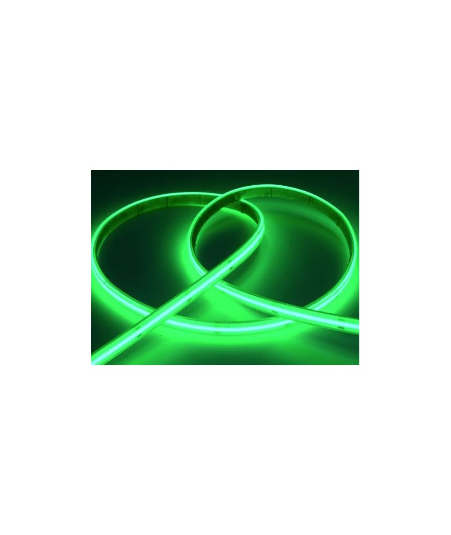 Denne COB LED-strip gir et jevnt og uavbrutt lys uten synlige mellomrom, takket være de 320 LED-ene per meter. LED-stripen gir et flott grønt lys, som er ideell til både dekorativ og praktisk belysning.