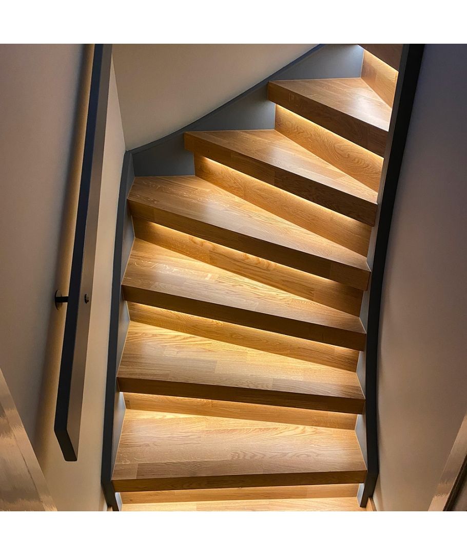 Komplett løsning som gir et hyggelig og flot lys langs trappen din.