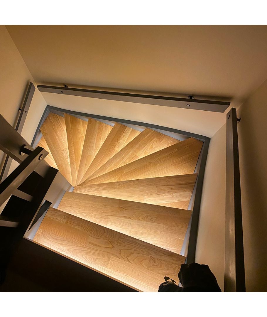 Forvandle trappen din med et moderne og stilrent belysningssett som gir både estetikk og funksjonalitet. Dette LED COB-stripsettet er designet for å belyse opptil 16 trinn og gir en imponerende lysstyrke med 11W per trinn.