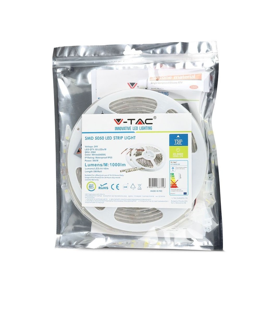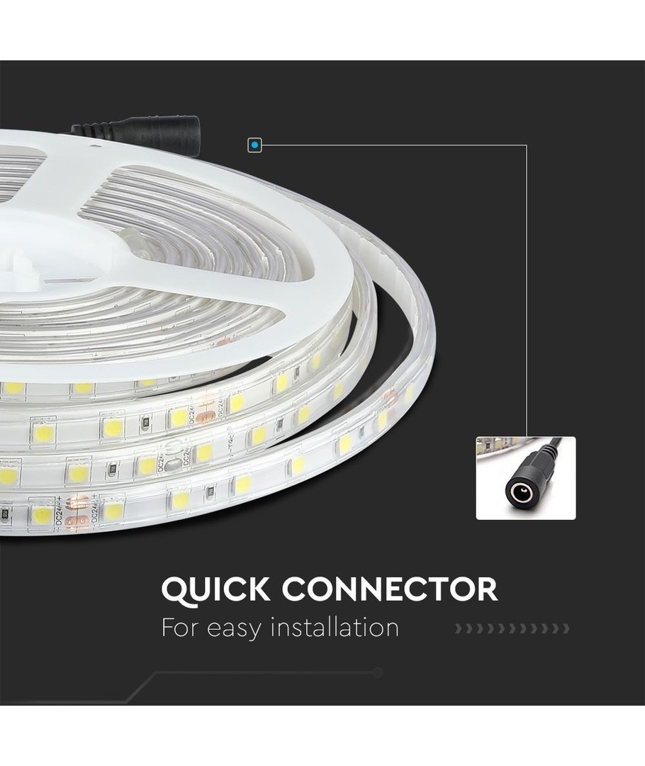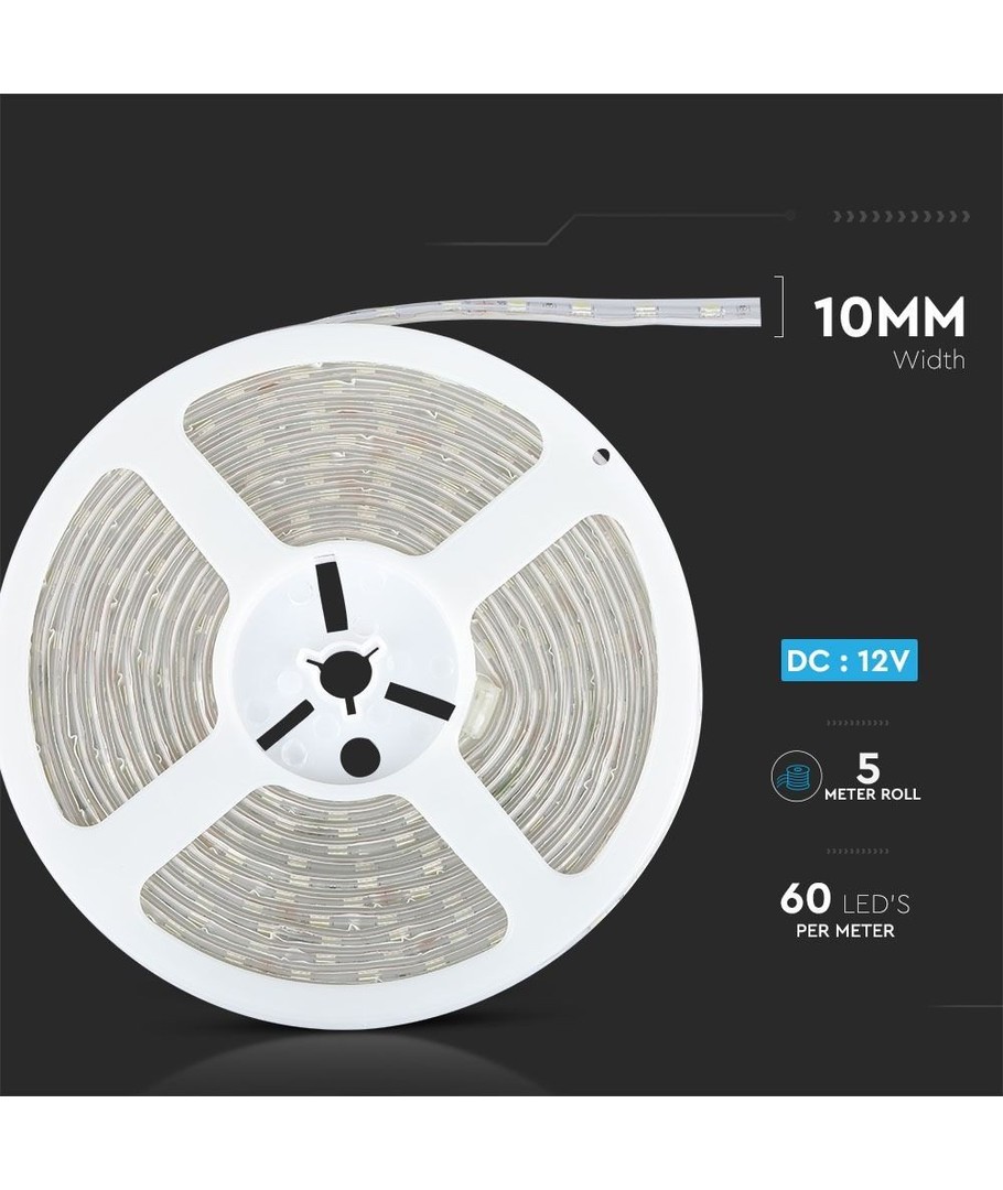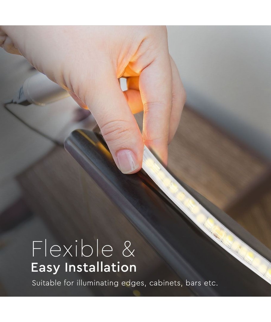 Oppgrader belysningen din med denne fleksible 5 meter LED-stripen som gir 9W per meter. Perfekt for både innendørs og utendørs bruk, den er utformet for å motstå vannsprut med sin IP65-klassifisering.