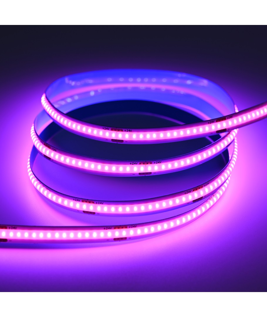 Ensfarget rosa COB LED strip med 320 LED-er per meter.
