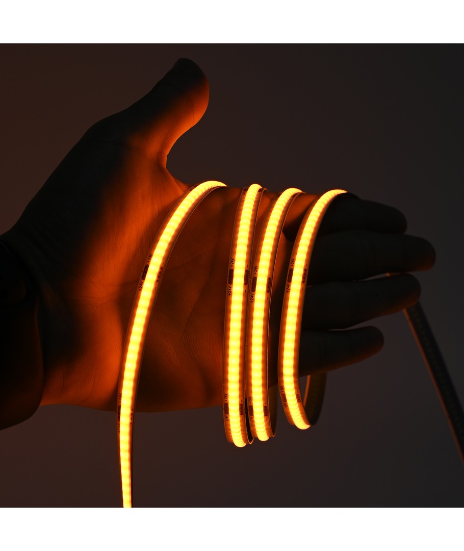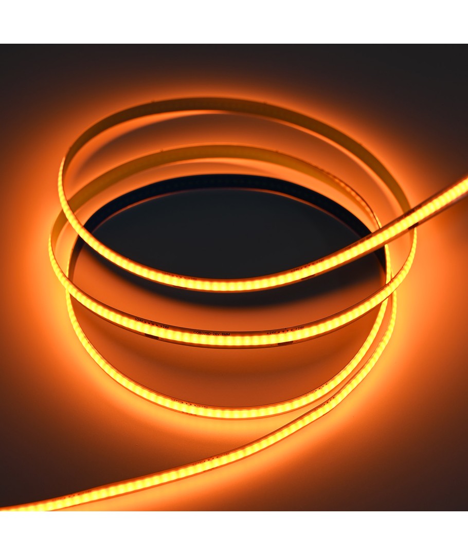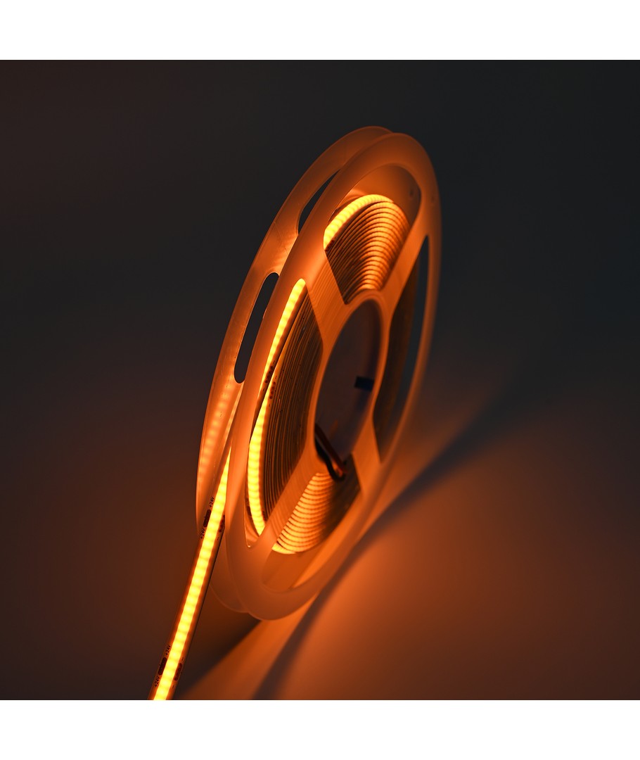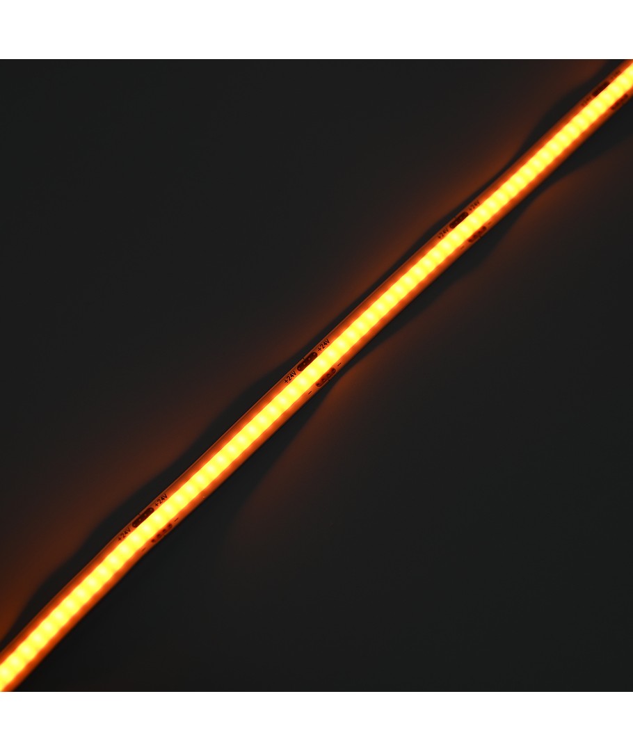 Ensfarget oransje COB LED strip med 320 LED-er per meter.