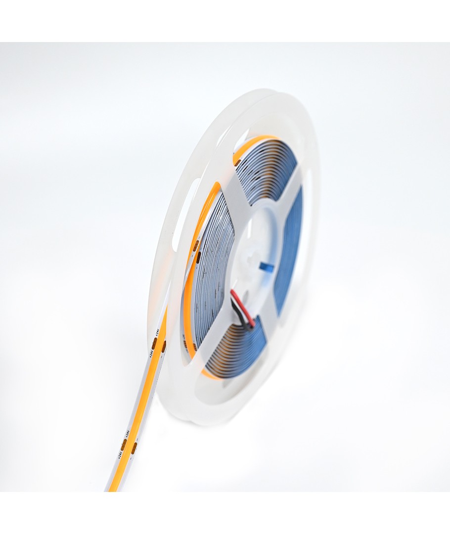 Dette er en 5 meter lang LED stripe designet for å gi en jevn og konsekvent lysfordeling takket være sin spesielle COB-teknologi. Med hele 240 LED per meter, er denne stripen ideell for oppgaver som krever en lys og sømløs belysning.