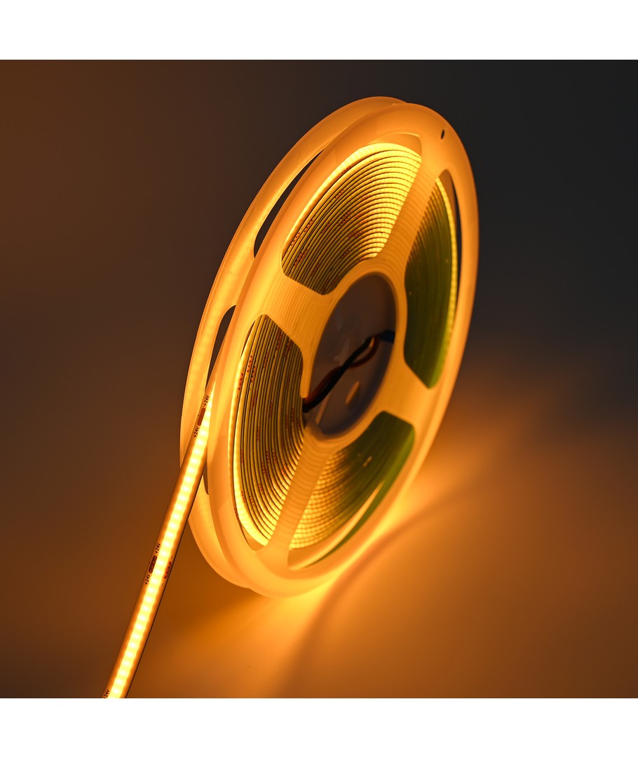 Ensfarget gyllen gul COB LED strip med 320 LED-er per meter.