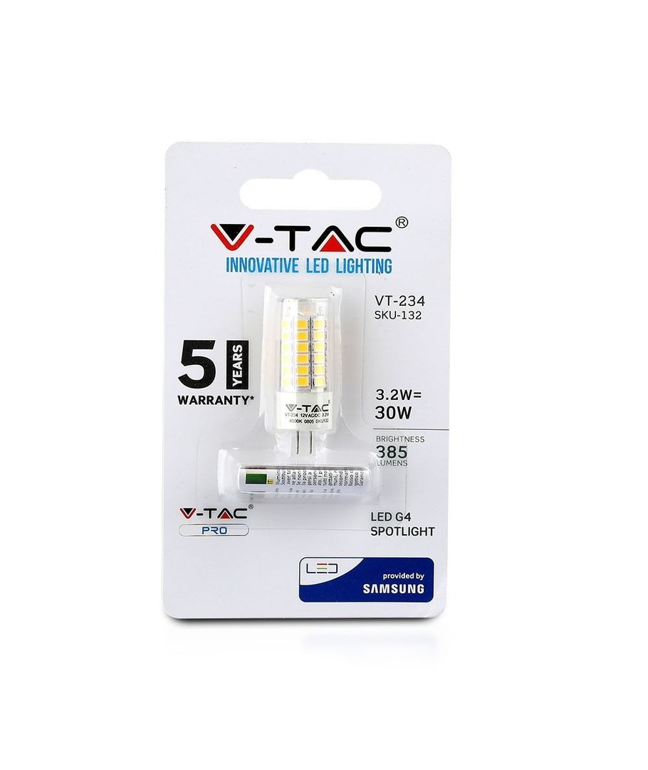 Oppgrader belysningen din med en 3,2W LED-pære som går inn i en G4 fatning og kan effektivt erstatte en 30W tradisjonell pære. Denne moderne LED-løsningen må kobles til en 12V DC forsyning, som gir optimal energieffektivitet og klarer å produsere lys med en lysstyrke på 385 lumen.