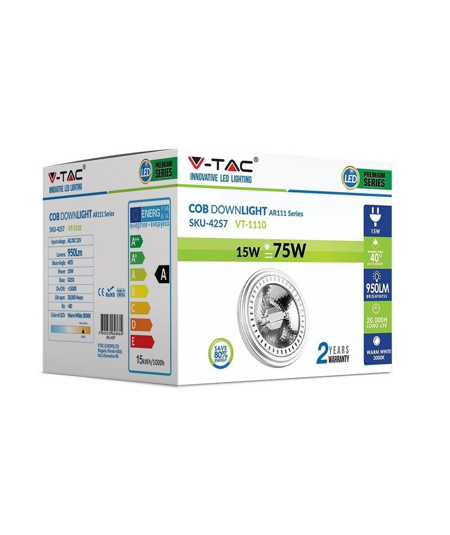 Kraftig AR111 G53 LED pære.