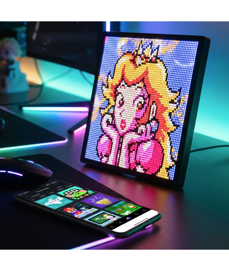 Gi oppsettet ditt et kreativt og levende uttrykk med denne 64x64 Pixel Art-skjermen. Skjermen er bygget opp rundt et 64x64 pikselrutenett, som gir deg 4096 individuelle piksler å leke med. Den stilige skjermen kan vise alt fra pixel art til animerte figurer og skaper en unik stemning både i spillhjørnet og på barnerommet.